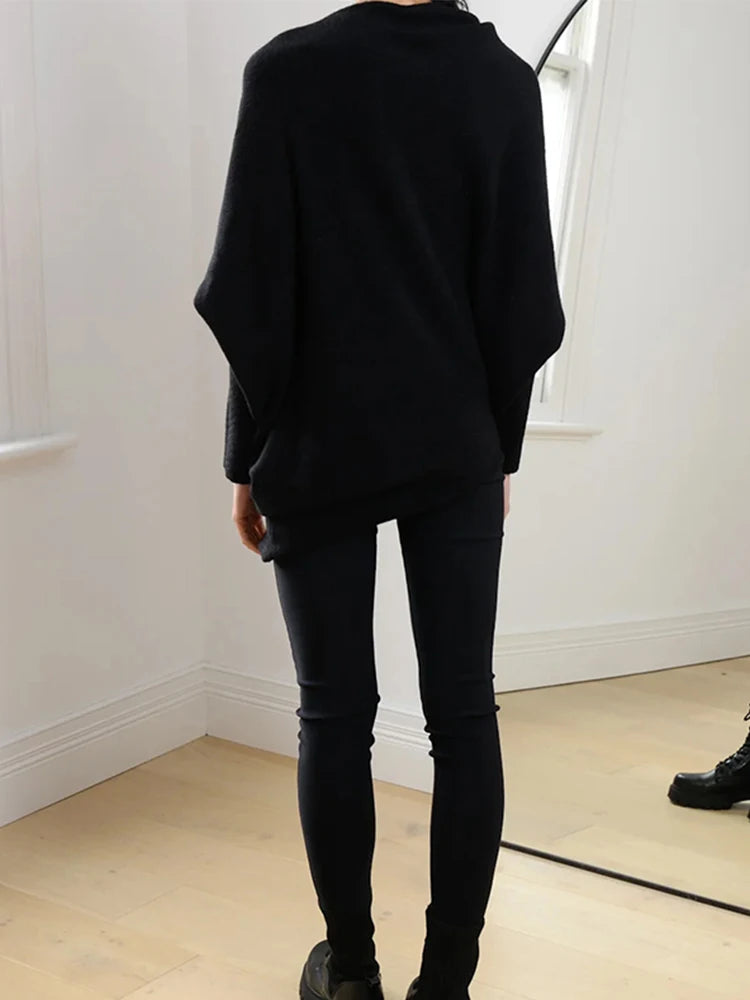 2025 Autumn And Winter New Women's Ribbed Knit Jumper Set Head Casual Bat Sleeve Round Neck Simple Versatile Knitwear Jumper